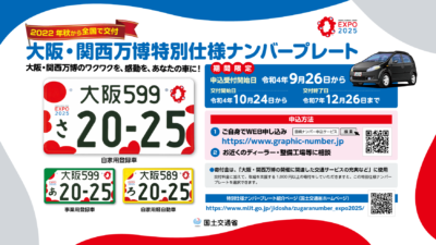 さて、2025年の大阪・関西万博開催を記念して令和4年10月より記念ナンバープレートが交付されています。