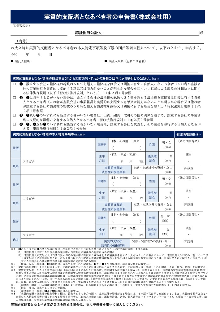 令和5年6月1日より実質的支配者となるべき者の申告書が変更しました。
